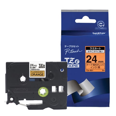 ブラザー(brother) TZe-B51 ピータッチ 蛍光カラーテープ 黒文字/蛍光オレンジ 24mm
