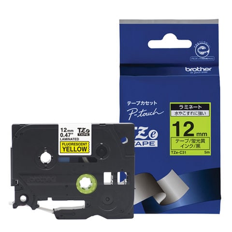 ブラザー(brother) TZe-C31 ピータッチ 蛍光カラーテープ 黒文字/蛍光黄 12mm
