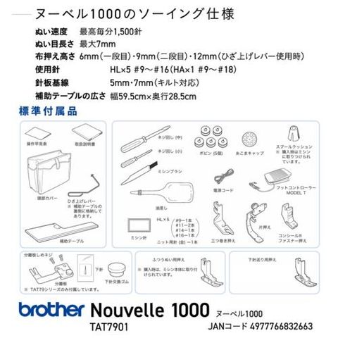 ブラザー(brother) TAT7901 Nouvelle 1000 ヌーベル1000 FOR PROFESSIONAL 直線ぬい専用 職業用ミシン