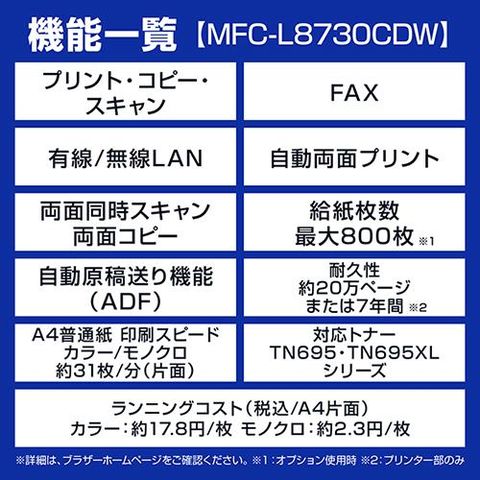 ブラザー(brother) MFC-L8730CDW ホワイト A4カラーレーザー複合機のレビュー