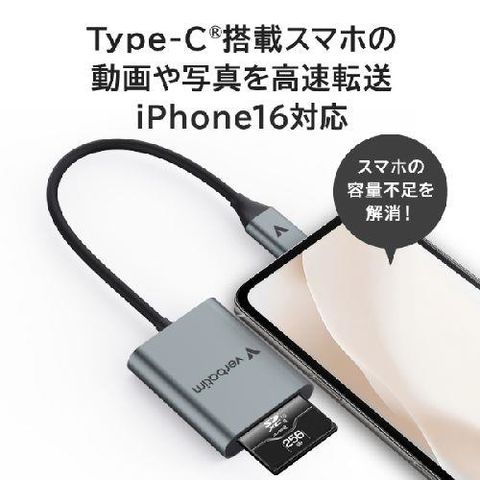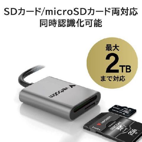 Verbatim(バーベイタム) SDMSD4CRV1 シルバー SD/microSDカードリーダー USB-TypeC HS-II対応 PC スマホ対応