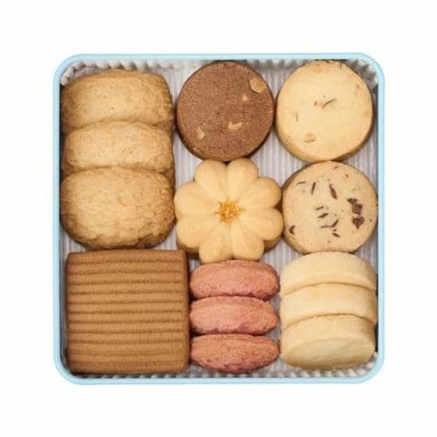 2025年ウィンターシーズナル柄の缶に8種類のバラエティー溢れるクッキーを詰め合わせしました。
