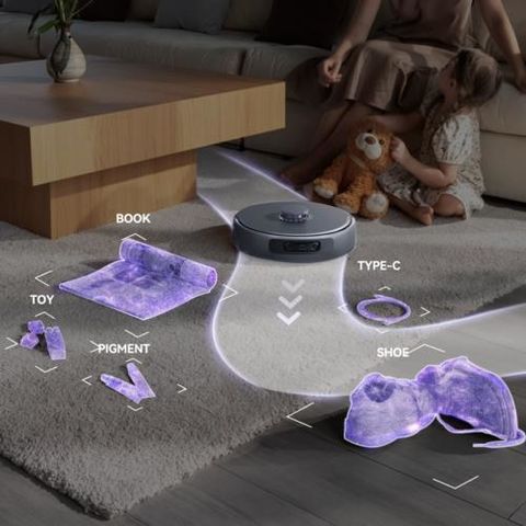 世界初のデュアルRGBカメラにより人間の視覚のように、充電ケーブルのような細かいものも含め立体的に周囲を認識。事前の片付けをせずとも、周囲の障害物を認識し清掃します。さらに、120種類以上の対象を識別し、それぞれに対して最適なアクションをします。