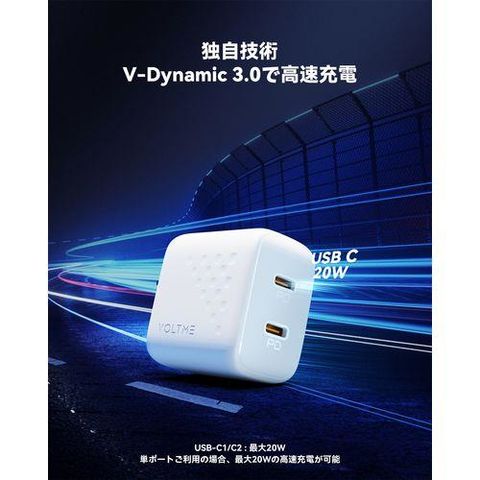 ボルトミー(VOLTME) V2087 ホワイト USB急速充電器 Revo 20 Duo Lite USB PD パワーデリバリー 対応 20W USB-C×2ポート