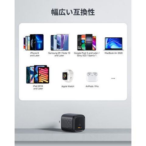 出力:USB-C 3.3-11V=3A(PPS)/ 5V=3A 9V=3A/12V=2.5A /15V=2A 20V=1.5A(最大30W)