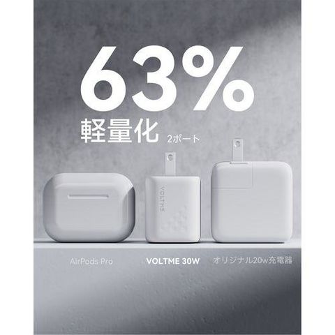 ボルトミー(VOLTME) V2096 ホワイト USB急速充電器 Revo 30 Duo C+C USB PD パワーデリバリー 対応 30W USB-C×2ポート 折りたたみ式プラグ