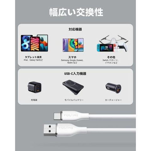 ボルトミー(VOLTME) C2125 ホワイト モスシリーズシリコン 充電ケーブル USB-C&USB-A 60W 1.8mのレビュー