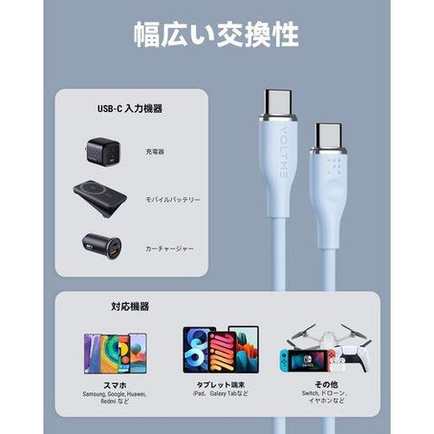 ボルトミー(VOLTME) C2132 ブルー モスシリーズシリコン 充電ケーブル USB-C&USB-C 60W 1m