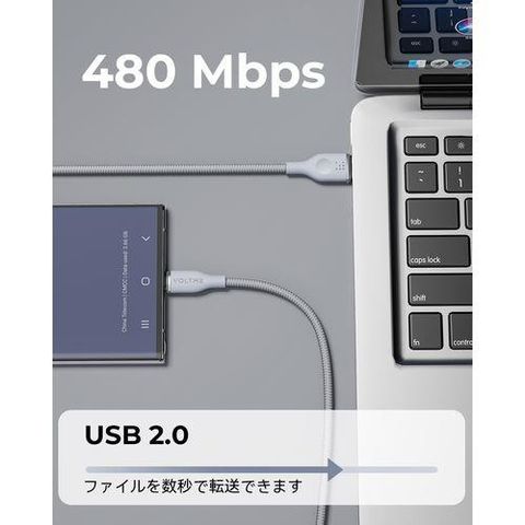 ボルトミー(VOLTME) C2153 グレー ラグシリーズナイロン 充電ケーブル USB-A&USB-C 60W 1m