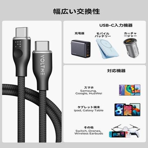 ボルトミー(VOLTME) C2158 ブラック ラグシリーズナイロン 充電ケーブル USB-C&USB-C 60W 1m