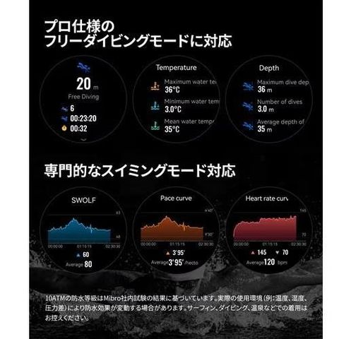 スポーツモード:150種類以上、2種スポーツの自動認識