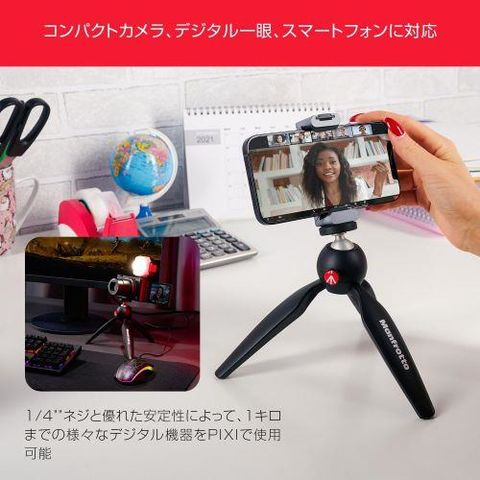 マンフロット(Manfrotto) MTPIXIMII-B PIXI 脚を閉じるとハンドグリップになるミニ三脚
