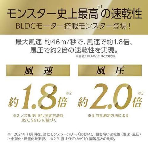 ■最大風速約46m/秒、BLDCモーター搭載、小型軽量化