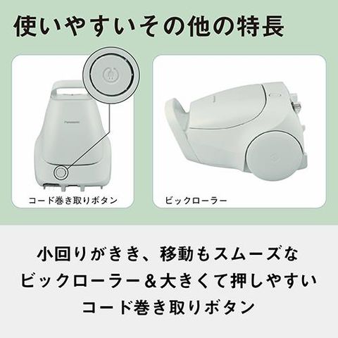 ■大きく押しやすいコード巻き取りボタンで、誰でも使いやすいデザイン