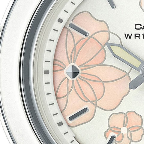 ■1時・5時・9時位置のインデックスを兼ねている花の中心部には、メタリックなスタッズデザインを採用し、質感を上げています