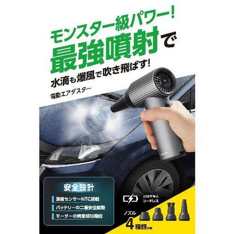 ■ハイクラスな風圧で、洗車後の車全体の水滴やDIY作業で出た切りくずを一気に吹き飛ばし、手軽に掃除できます。