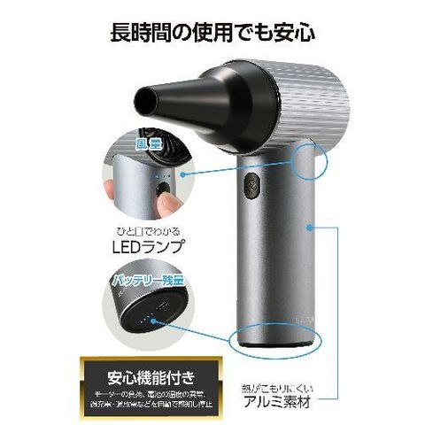 【長期保証付】エレコム(ELECOM) AD-ALB05BK スペースブラック エアダスター 電動 USB 充電式 強力 ブロワー 3段階風量調整 ノズル付属