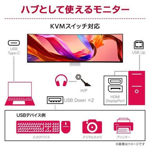 ■KVMスイッチ/ピクチャーバイピクチャー(PBP)搭載。2台のPCからの画面を一つに映し出せる余裕の表示領域。KVMで2台の操作もかんたんに