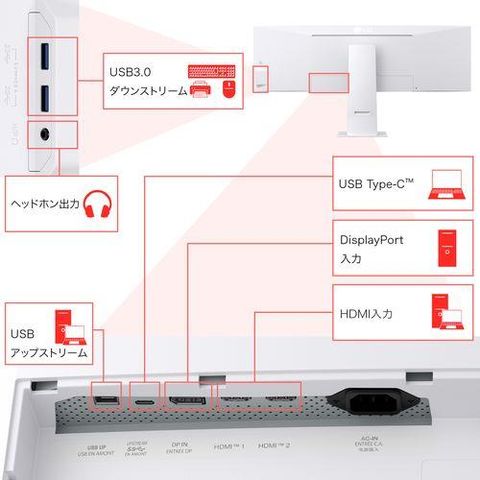 USBハブ:アップストリーム: USB2.0 Type-Bx1、ダウンストリーム:USB3.0 Type-Ax2