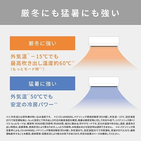 【長期保証付】パナソニック(Panasonic) エアコン 14畳用 4kW パナソニック Eolia UXシリーズ CS-UX406D2-W クリスタルホワイト 電源200V[配送のみ/設置工事なし