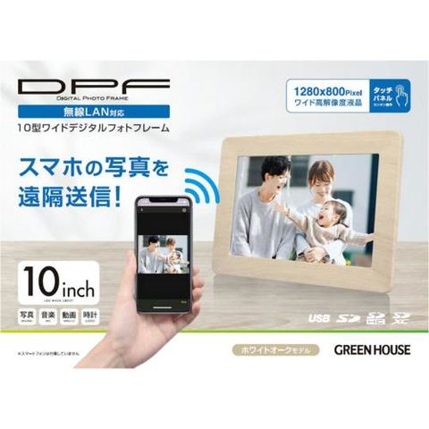 【長期保証付】GREEN HOUSE(グリーンハウス) GH-WDF10A-WO ホワイトオーク 10インチ無線LAN対応デジタルフォトフレーム タッチパネル搭載