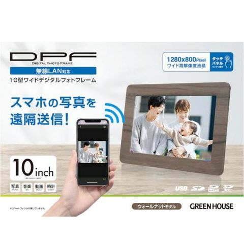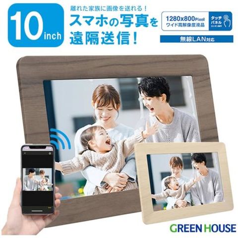 【長期保証付】GREEN HOUSE(グリーンハウス) GH-WDF10A-WN ウォールナット 10インチ無線LAN対応デジタルフォトフレーム タッチパネル搭載