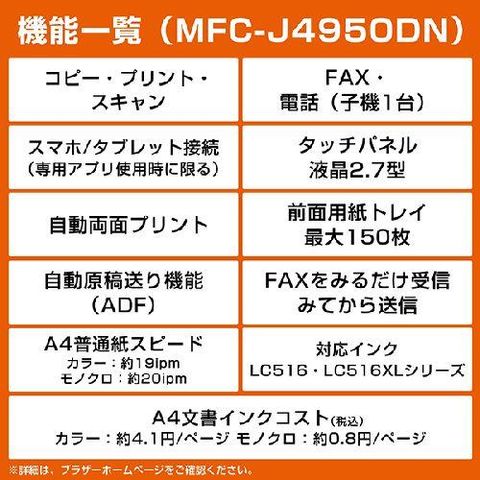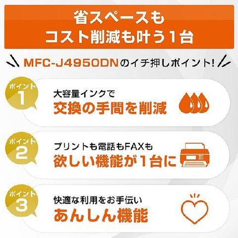 【長期保証付】ブラザー(brother) MFC-J4950DN インクジェットプリンター 複合機 A4 無線LAN プリンター コピー スキャナー ファクス 電話機1台 ホワイト