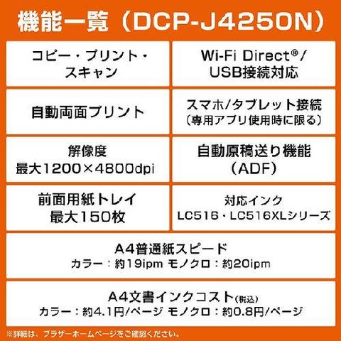 【長期保証付】ブラザー(brother) DCP-J4250N インクジェットプリンター A4 無線LAN プリンター コピー スキャナー ホワイト