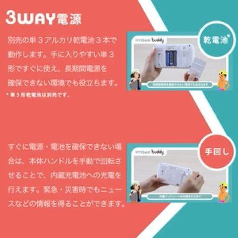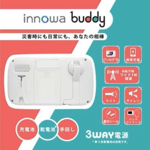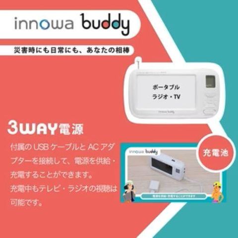 【長期保証付】innowa(イノア) BD001 innowa buddy 手回し ポータブルテレビ・ラジオ 3WAY充電 LEDライト搭載 モバイルバッテリーにもなるテレビ