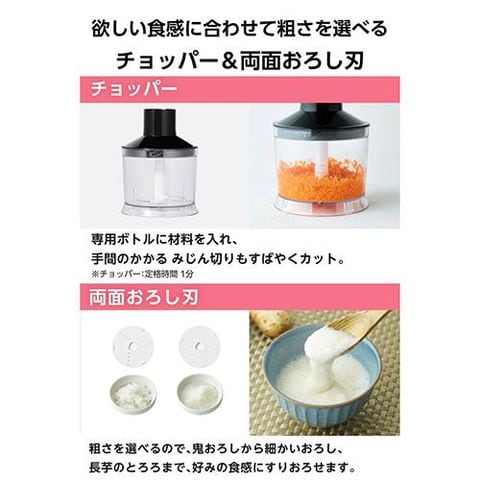 付属品:ブレンドカップ、ボトル、チョッパー、両面おろし刃、ビーター