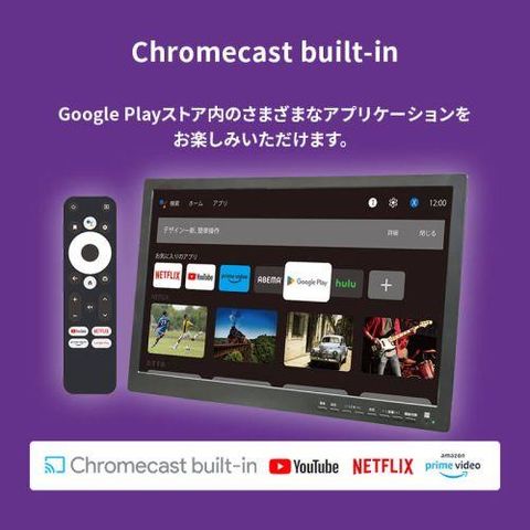 内容物:本体、リモコン、貼付シール、リモコン用乾電池(試供品)、Aアダプター、USB充電用ケーブル、12V車専用DCシガーアダプター(24V車使用不可)、イヤホン、地デジ受信用簡易アンテナ、B-CASカード、地デジ設定用簡易マニュアル、スマートTV正気設定マニュアル、取扱説明書(本書)、製品保証書