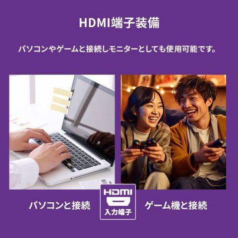HDMI、USB Type-Cに対応し、PCやゲーム機などを接続可能です。