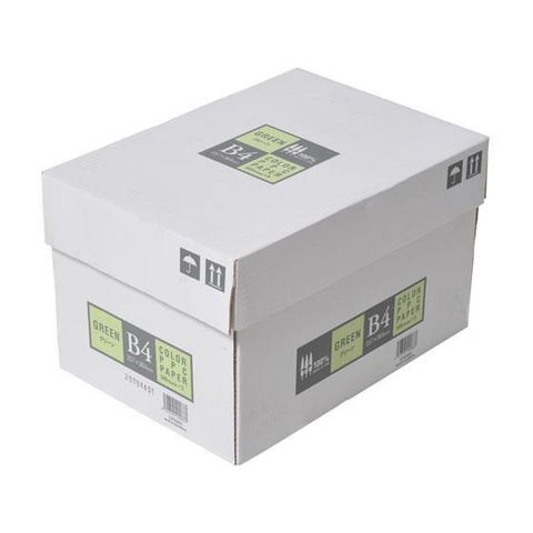 蓋式の外箱は文書保存箱として使えます。●サイズ:B4●色:グリーン●坪量:70g/m2●紙厚:93μm●普通紙FAX、インクジェットプリント、コピー、レーザープリンター対応●注文単位:1箱(500枚×5冊)●GPNエコ商品ねっと掲載