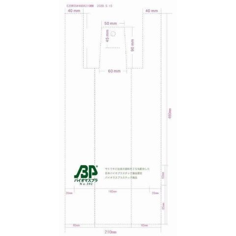 サトウキビ由来の原料を25%配合した日本バイオプラスチック協会認定バイオマスプラスチック商品です。●サイズ:幅210×マチ130×高さ460mm ※マチ幅は広げた時のサイズです。●厚み:0.014mm●材質:バイオマスポリエチレン25%配合●仕様:ブロック(穴、ミシン目)つき●注文単位:1箱(100枚×20袋) ※レジ袋1枚1枚にBPマーク(バイオマスプラマーク)が印字されております。