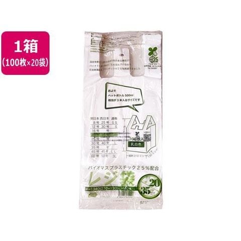 紺屋商事 バイオマス25%配合レジ袋 乳白 20号 100枚×20袋