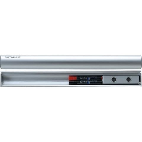 ●サイズ:幅588×奥行63.5×高さ43.7mm(収納時:幅588×奥行29.5×高さ58.7mm)●重量:0.5kg●材質:本体/アルミ.キャップ/ABS樹脂●色:シルバー●裏面マグネット付●付属品:マーカー(大)黒・赤 各1本.イレーザー(ME-203)1個