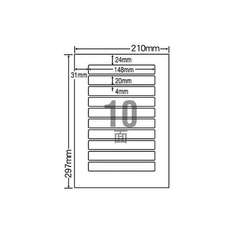 ●ラベルサイズ:148×20mm●シートサイズ:A4(210×297mm)●標準総厚み:134μm●ラベル厚:73μm●入数:1冊(100シート)●10面付(1列×10段)●モノクロレーザープリンタ、カラーレーザープリンタ、カラーコピー対応●マット紙●GPNエコ商品ねっと掲載