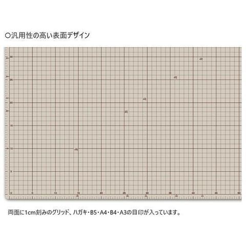 ソフトな刃当たりで、快適なカッティングを実現。カッターの刃の摩擦も軽減されます。軟・硬・軟のサンドイッチ構造。両面に1cm刻みのグリッド入りで、両面使用できます。表は目に優しいソフトグレー。裏は落ち着いた雰囲気のブラウン。インテリアや作業によって使い分けができます。●A1●サイズ:620×900×2mm●材質:PVC●注文単位:1枚●グリーン購入法適合●GPNエコ商品ねっと掲載※塩ビ特有の臭いがあります。