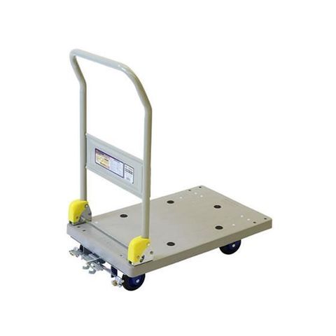 キャスター部からの金属音をカットした低騒音タイプ。走行騒音40dB以下を実現。●サイズ:幅455×奥行760mm●重量:10.8kg●材質:荷台/ポリプロピレン、キャスター/ブタジエンラバー●最大積載荷重:150kg●荷台高さ:144mm●ハンドル高さ:905mm●車輪径:100mm●ハンドル折りたたみ式●フットブレーキ付き●安全カバー付なので折りたたむ時も指をはさむ心配がありません。
