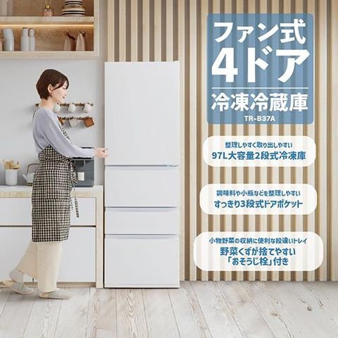 【標準設置料金込】TCL(ティーシーエル) TR-B37A ホワイト 冷凍冷蔵庫 370L 右開き 幅60cm