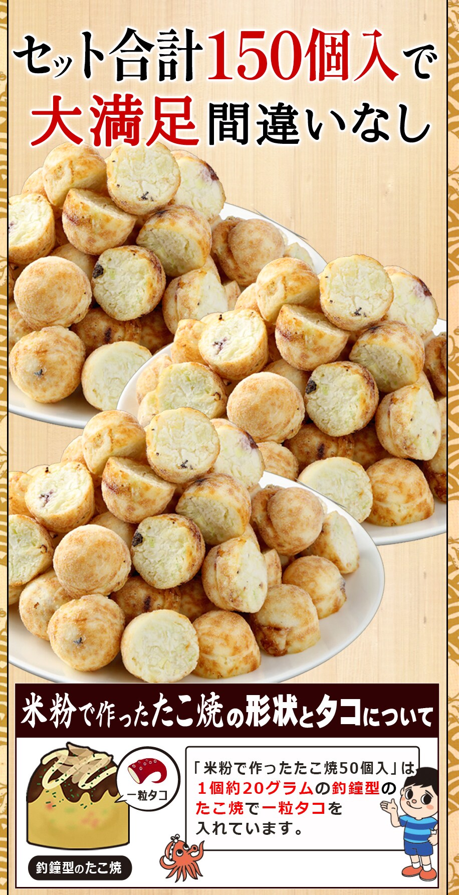 米粉で作ったたこ焼 150個入(50個×3袋)送 料込み【沖縄県は別途送料2,020円】 米粉 業務用 たこ焼き/たこやき 冷凍 八ちゃん堂 一粒たこ入り 冷凍たこ焼き 冷凍食品 特定原材料8品目不使用 小麦粉不使用 卵不使用 惣菜 九州 国産