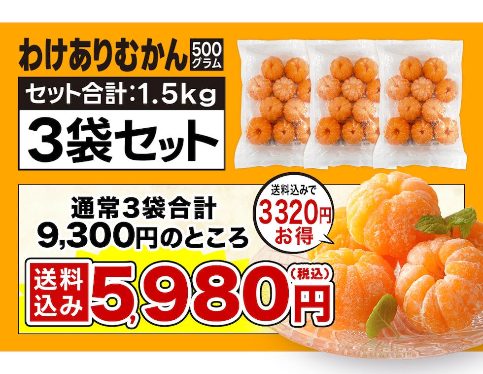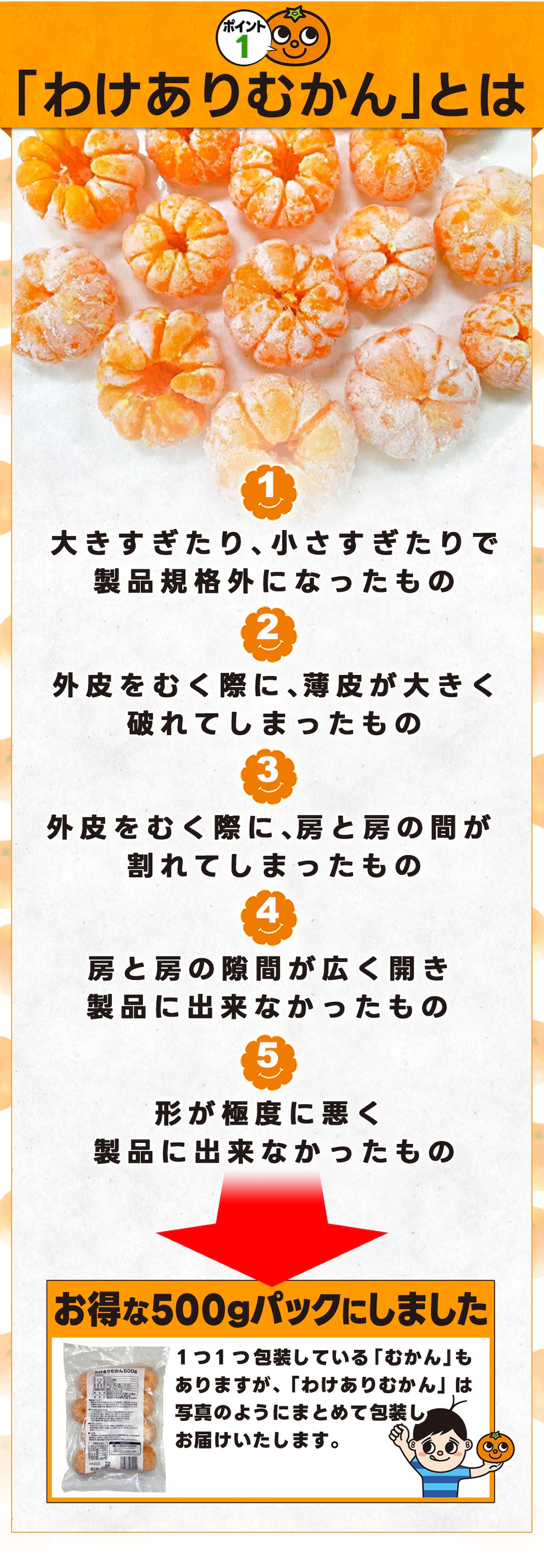 【単品合計9,300円→5,980円】 わけありむかん 500g×3袋セット送料込み【沖縄県は別途送料2,020円】 外皮をむいた冷凍みかん グルメ大賞 むかん 冷凍フルーツ ミカン 国産 デザート スイーツ フルーツ 果物 訳あり お歳暮