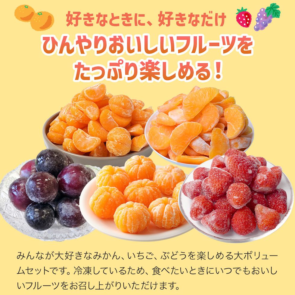 冷凍フルーツセットDX 5種セット 3.4kg みかん 不知火 あまおう ひとくち 苺 冷凍みかん 巨峰 皮なし フルーツ 果物 詰め合わせ 冷凍 国産 八ちゃん堂