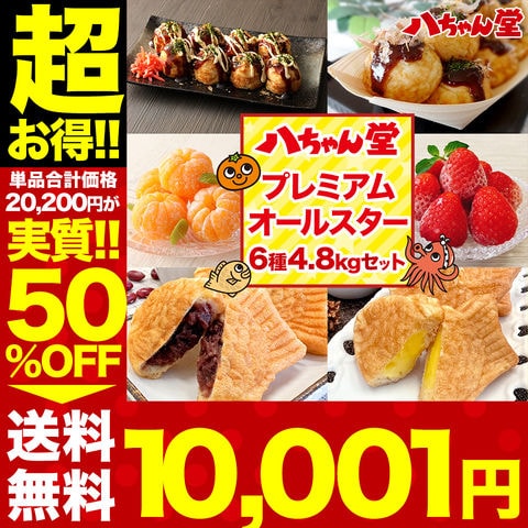 【単品合計価格20,200円→10,001円】 八ちゃん堂 【 プレミアムオールスター 】 送料込み【沖縄県は別途送料2,020円】 6種4.8kgセット たこ焼き わけありむかん たい焼き 大容量 お取り寄せ グルメ 国産 冷凍 みかん たこやき
