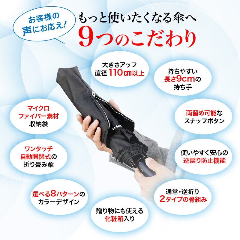 \長傘並のサイズ感/折りたたみ傘 大きい メンズ 折り畳み傘 自動開閉 大きいサイズ 傘 子供 晴雨兼用 撥水加工 逆戻り防止 高撥水 逆さ傘 逆折り 日傘 収納袋 傘カバー 折り畳み 丈夫 ワンタッチ レディース ギフト 化粧箱 夏