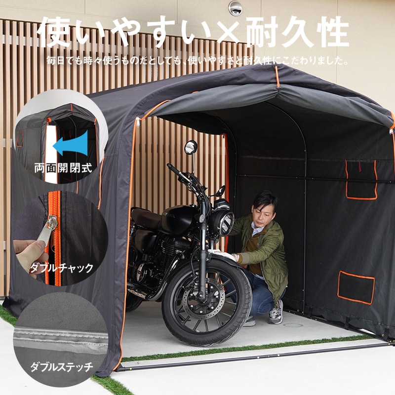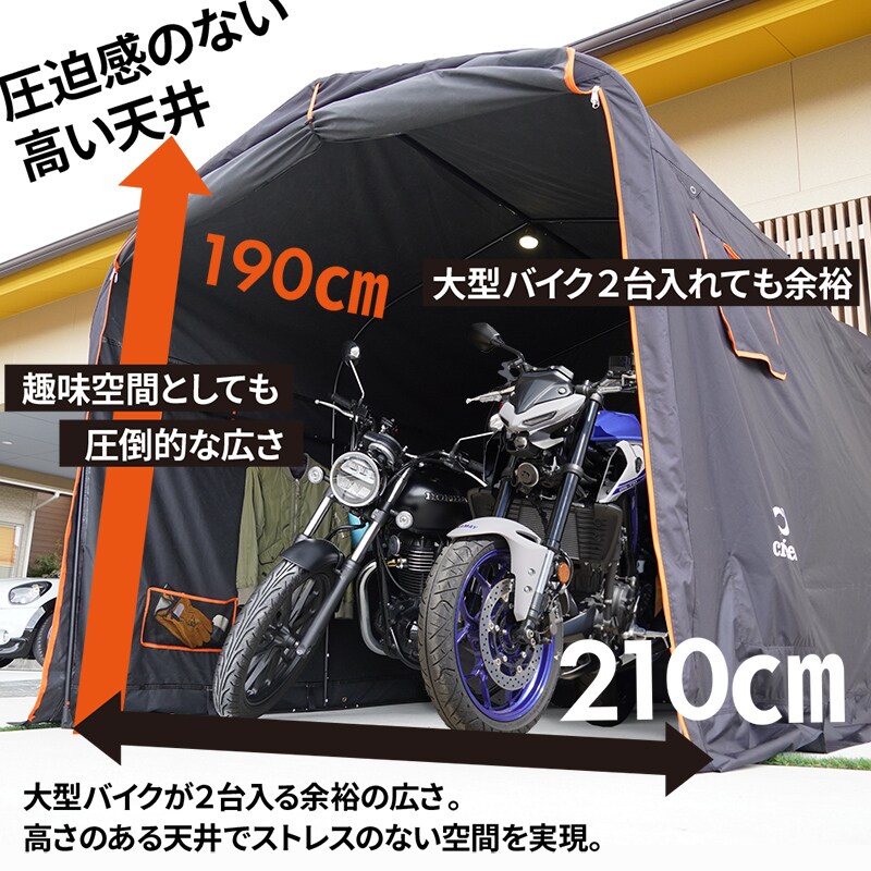 \もっと強くリニューアル!/ バイクガレージ Lサイズ ガレージ 大きめ 大型 バイク 厚手 600D 耐水性 サイクルハウス 物置 組み立て式 簡単 屋外 ワイド 2台 3台 自転車置場 おしゃれ サイクルガレージ 大型バイク 自転車置き場 自転車 家庭用 収納 テント 保管のレビュー