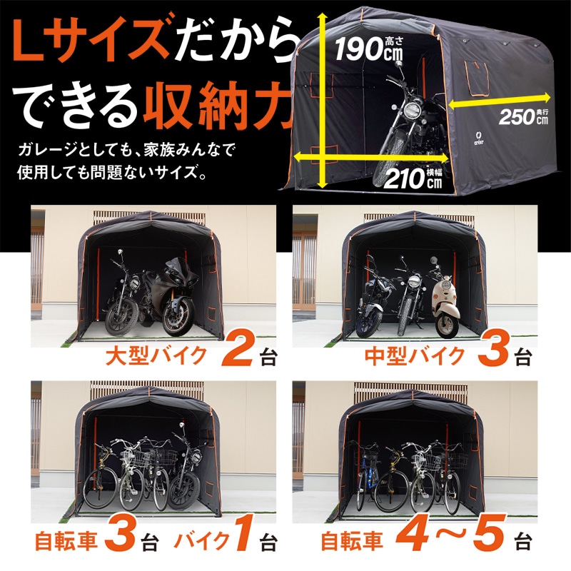 \もっと強くリニューアル!/ バイクガレージ Lサイズ ガレージ 大きめ 大型 バイク 厚手 600D 耐水性 サイクルハウス 物置 組み立て式 簡単 屋外 ワイド 2台 3台 自転車置場 おしゃれ サイクルガレージ 大型バイク 自転車置き場 自転車 家庭用 収納 テント 保管