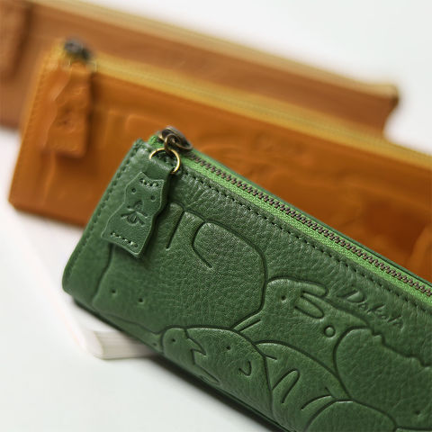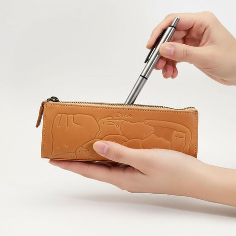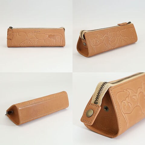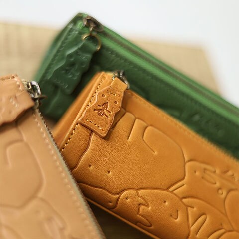 子供の頃を思い出す懐かしい動物パズルを、素上げの革に型押しで表現しました。さまざまな動物がぎゅっと詰まった柄は、眺めているだけでも楽しく、使うたびに気持ちが和むデザインです。