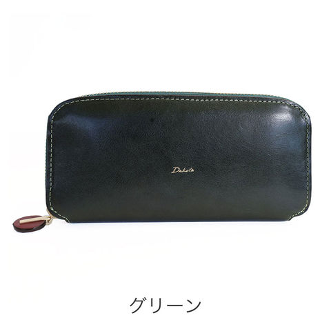 丸みを持たせたフォルムと、丸い引手が魅力のラウンドファスナー長財布です。