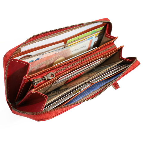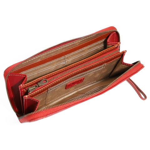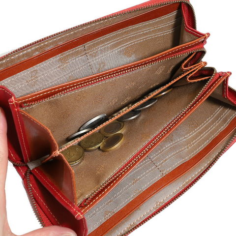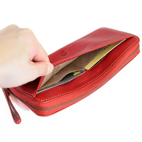 ラウンドファスナー仕様で開閉口が大きく開き、出し入れしやすくなっています。